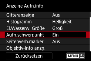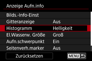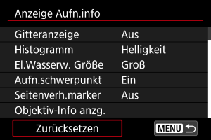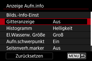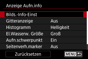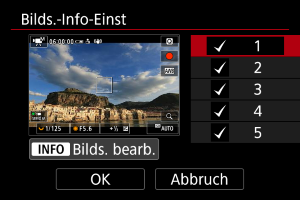 , um die auf der Kamera anzuzeigenden Informationsbildschirme auszuwählen.