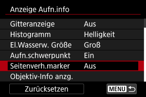 - Während der Movie-Wiedergabe werden keine Markierungen angezeigt (aufgezeichnete Movies sind nicht mit Seitenverhältnis-Markierungsinformationen versehen).