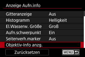 Sie können Informationen über das verwendete Objektiv anzeigen.