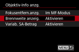 Sie können die Brennweite des verwendeten Objektivs anzeigen.