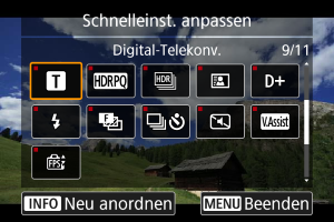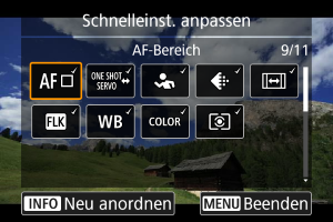 - Auf dem Schnelleinstellungsbildschirm angezeigte Elemente sind mit einem Häkchen gekennzeichnet. Elemente ohne ein Häkchen werden entfernt.