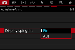 Es kann ein Spiegelbild angezeigt werden, wenn Sie mit zum Motiv gedrehter Bildschirmanzeige (zur Vorderseite der Kamera) aufnehmen.