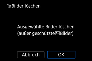Sie können nicht benötigte Bilder wählen und einzeln löschen oder sie zusammen als Stapel löschen. Geschützte Bilder () werden nicht gelöscht.