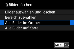 Löschen aller Bilder in einem Ordner oder auf einer Karte