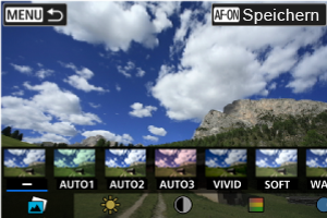 können Sie [VIVID], [SOFT] oder andere voreingestellte Effekte auswählen. [AUTO1], [AUTO2] und [AUTO3] sind von der Kamera empfohlene Effekte, die auf den Bildbedingungen basieren.