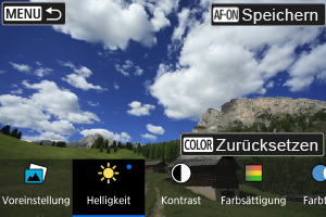 - Sie können Effekte wie [Helligkeit] oder [Kontrast] auswählen, indem Sie die Taste