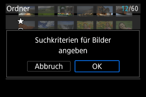 - Die Suchbedingungen werden möglicherweise gelöscht, nachdem die Kamera eingeschaltet oder die Karte gewechselt und Bilder bearbeitet, hinzugefügt oder gelöscht wurden.