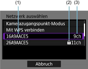 Wählen Sie auf dem Bildschirm [Netzwerk auswählen] einen Zugangspunkt aus.