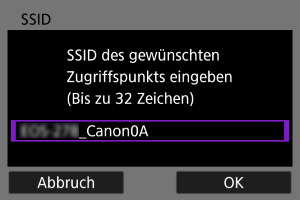 Stellen Sie eine Verbindung zu einem Zugangspunkt her, indem Sie dessen SSID (oder ESS-ID) eingeben.