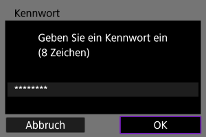 - Sowohl auf dem anderen Gerät als auch auf der Kamera muss die gleiche Art von Sicherheit eingestellt sein. Unter Authentifizierungs- und Datenverschlüsselungsmethoden finden Sie Einzelheiten zu den den Arten der Authentifizierung und Verschlüsselung.