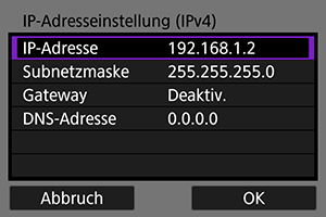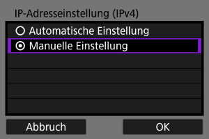 Richten Sie die Einstellungen für die IP-Adresse manuell ein. Die angezeigten Elemente sind von der Kommunikationsfunktion abhängig.
