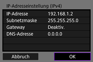 - Wenn der Bildschirm [Einst. IP-Adr.] angezeigt wird, gehen Sie zu Einstellen der IP-Adresse.