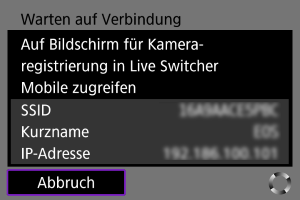 - Dieser Bildschirm wird nicht angezeigt, wenn die Kamera bereits mit dem Smartphone verbunden ist.