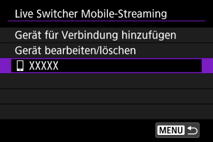- Wählen Sie in Live Switcher Mobile die Kamera für die Verbindung aus.