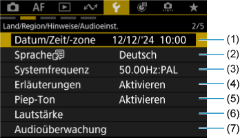 Land/Region/Hinweise/Audioeinst.