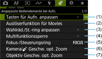 Angepasste Bedienelemente bei Aufn. (Movie-Aufnahmen)