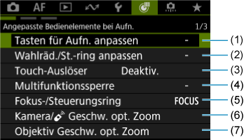Angepasste Bedienelemente bei Aufn. (Fotoaufnahmen)