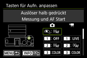 : Tasten für Aufn. anpassen] zugewiesen wurden.