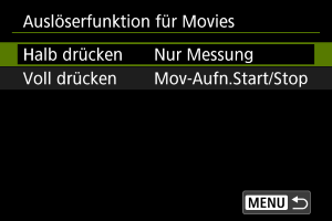 Sie können die Funktionen einstellen, die durch halbes oder ganzes Durchdrücken des Auslösers während der Movie-Aufnahme ausgeführt werden.