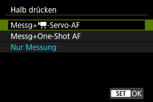Legen Sie fest, welche Funktion ausgeführt werden soll, wenn der Auslöser halb durchgedrückt wird.