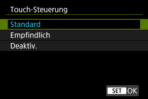 - Wenn [Empfindlich] eingestellt ist, wird die Kamera möglicherweise nicht so gut reagieren, wenn Sie eine schnelle Berührung ausführen.