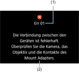 Wenn bei der Kamera ein Problem auftritt, wird eine Fehlermeldung angezeigt. Befolgen Sie die Anleitungen auf dem Bildschirm.