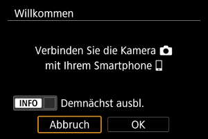 Anweisungen zum Verbinden mit einem Smartphone werden angezeigt, wenn Sie [OK] wählen, wenn der Setup-Bildschirm angezeigt wird ().