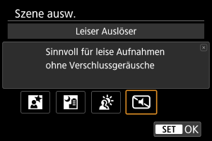 Wenn es leise sein muss, können Sie ohne Piep-Töne oder Verschlussgeräusche fotografieren.