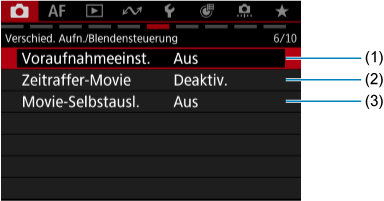 Registerkartenmenüs: Movie-Aufnahme