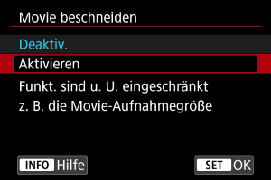Movies mit RF-S/EF-S-Objektiven aufzunehmen, hat die gleiche Wirkung wie die Funktion „Movie beschneiden“.