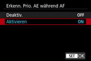 - [Aktivieren]: Die Messung erfolgt auf dem AF-Messfeld oder AF-Bereich, in dem das Motiv erkannt wurde.