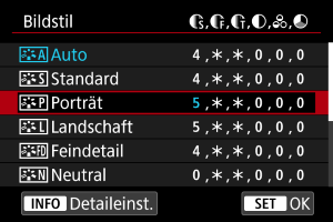 - Wählen Sie den anzupassenden Bildstil, und drücken Sie dann die Taste