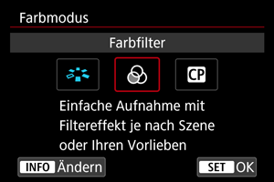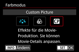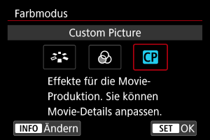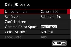 - Um die Farbanpassung auf der Basis von Look-Files zu deaktivieren, wählen Sie [Aus].