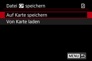 Bearbeitete benutzerdefinierte Bilddateien können auf einer Karte gespeichert und mit anderen Kameras desselben Modells verwendet werden.