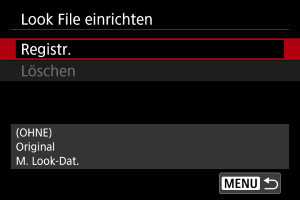 Bevor Sie beginnen, sollten Sie die zu registrierende Look-File auf eine Karte kopieren.