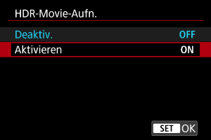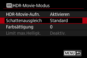 HDR-Aufnahme (PQ)] auf [HDR PQ] eingestellt sind.