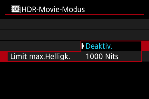 - Bei [Deaktiv.] ist die maximale Helligkeit nicht begrenzt. Empfohlen, wenn Sie Bilder auf einem Monitor überprüfen, der die Anzeige bei Helligkeiten über 1000 Nits unterstützt.