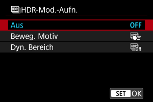 - Für normale, nicht-HDR-Aufnahmen wählen Sie [Aus].