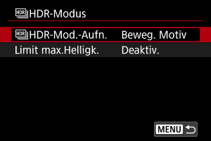 HDR-Mod.-Aufn.] auf [Deaktiv.] setzen.