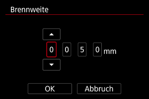 - Die Brennweite kann in einem Bereich von 1 bis 1000 mm (in Schritten von 1 mm) eingestellt werden.