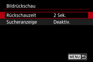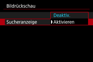 - Die Einstellungen für [Sucheranzeige] werden wirksam, wenn [Bildrückschau] auf eine andere Option als [Aus] eingestellt ist.