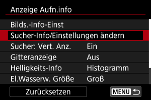 Wählen Sie [Sucher-Info/Einstellungen ändern].