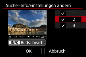 , um die im Sucher anzuzeigenden Informationsbildschirme auszuwählen.