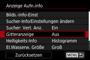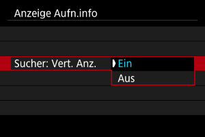 nach oben oder unten, um die Optionen auszuwählen, die auf dem Informationsbildschirm des Suchers angezeigt werden sollen.