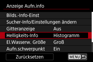 Wählen Sie den Histogrammtyp ([Helligkeit] oder [RGB]) und die Anzeigegröße ([Groß] oder [Klein]) aus.