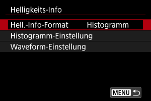 Sie können das Format der Helligkeitsinformationen (Histogramm oder Waveform-Monitor) einstellen, das verfügbar ist, wenn die Taste während der Aufnahmebereitschaft gedrückt wird.