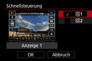 nach oben oder unten, um Anzeigeoptionen für die Schnelleinstellung auszuwählen.