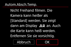- Sobald das Kameragehäuse heiß wird, wird als Warnung [