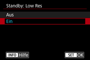 Stellen Sie auf [Ein], um Akkuleistung zu sparen und den Anstieg der Kameratemperatur im Standby zu kontrollieren.