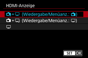 Movies werden auf der Kamera und auf dem über HDMI angeschlossenen Gerät angezeigt. Kameravorgänge wie die Bildwiedergabe oder Menüanzeige erfolgen über HDMI auf dem anderen Gerät.